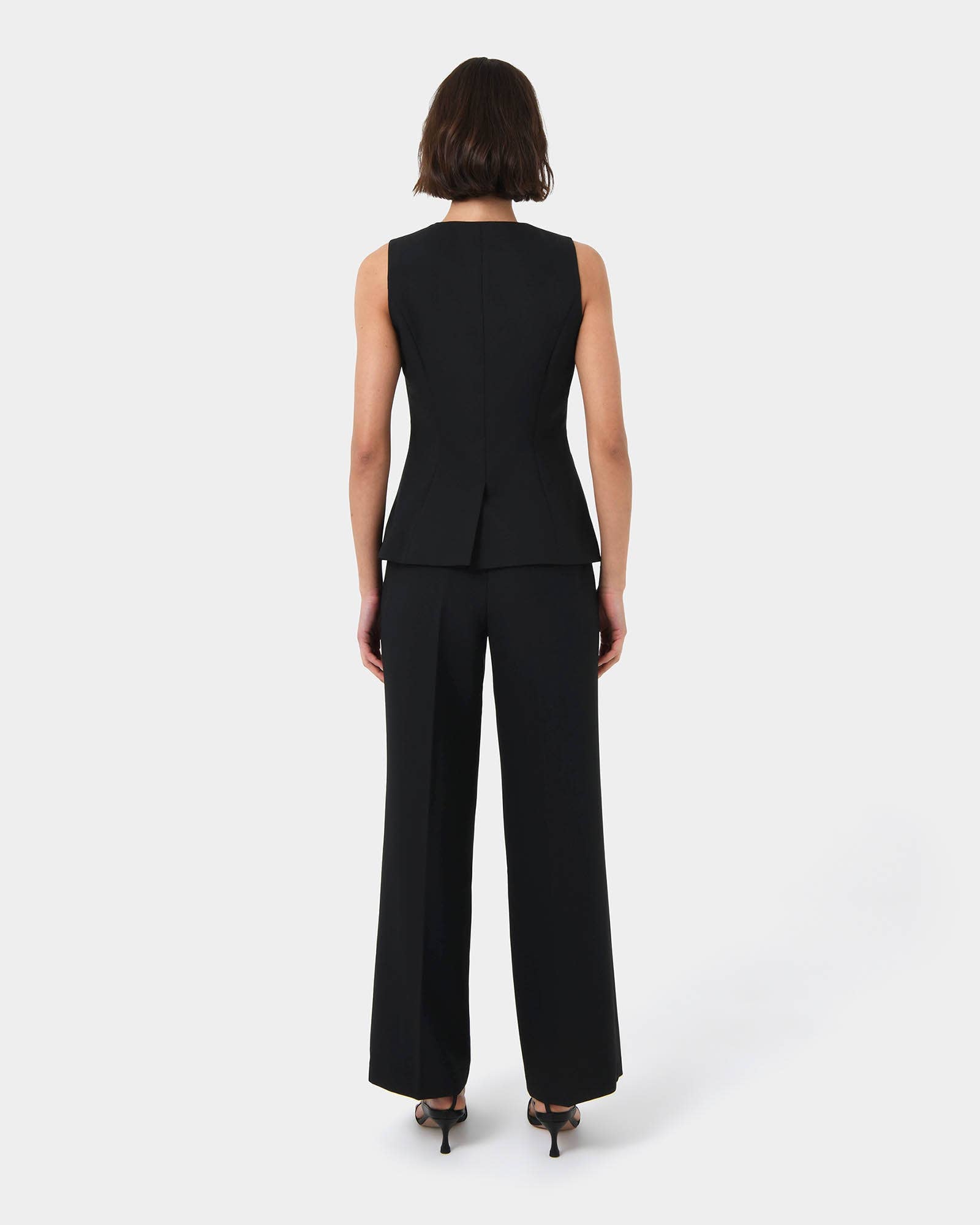 Introducing the Sofia Longline Vest a sleek, sleeveless piece designed for modern versatility. Whether paired with the matching Sofia Tailored Pants or styled on its own, this vest adds a polished touch to any outfit. - Matching Set with Sofia Tailored Pants - Round neckline - Sleeveless - Functional front welt pockets - Button-up closure - Slightly flared with split front hem - Back single vent - Lightweight with slight stretch fabrication Ivory: Refer to the first model imagery for the true colour