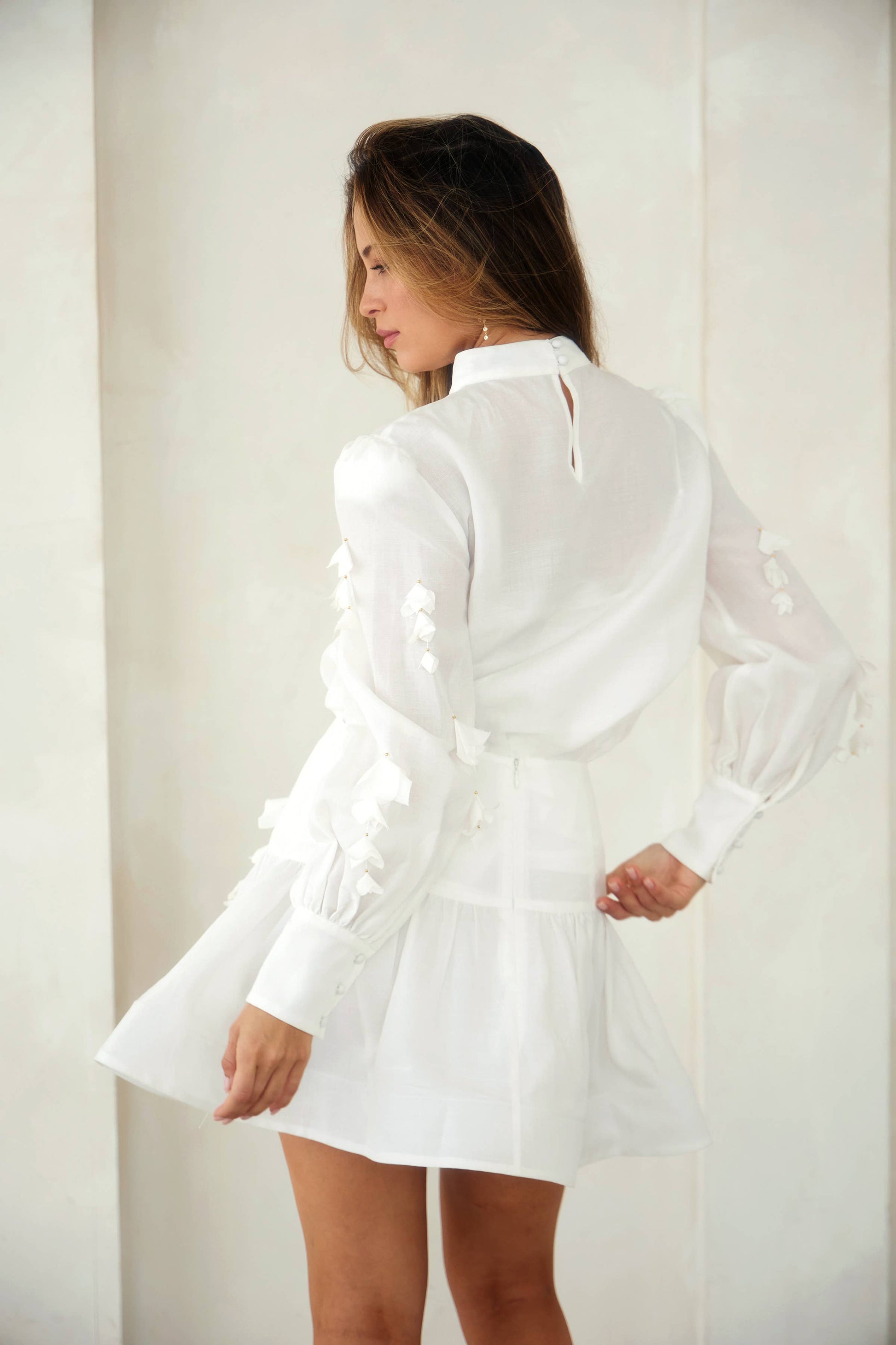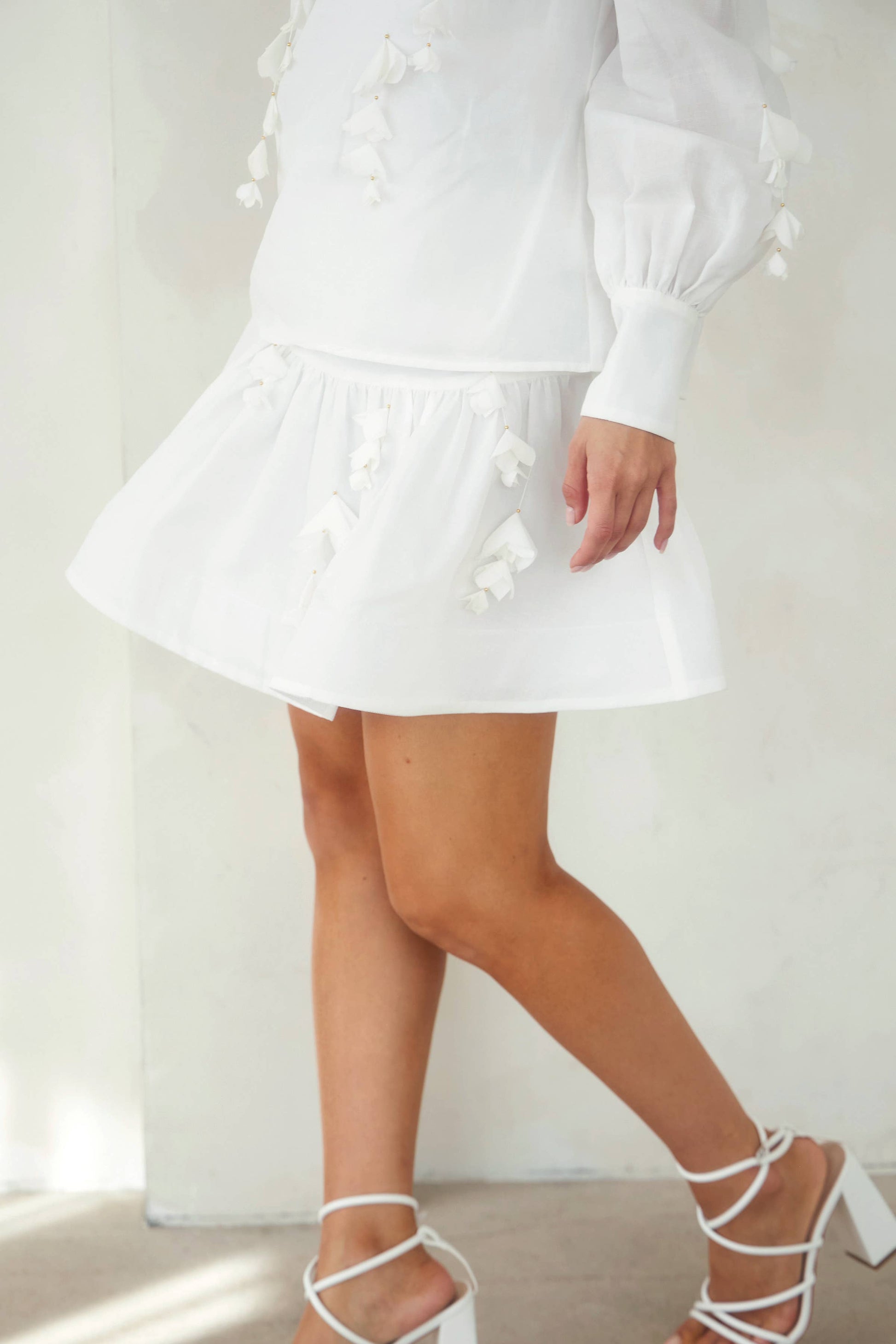 Fit and flare skirt with floral trim in the front.  Zipper closure in the back.  Lining inside.